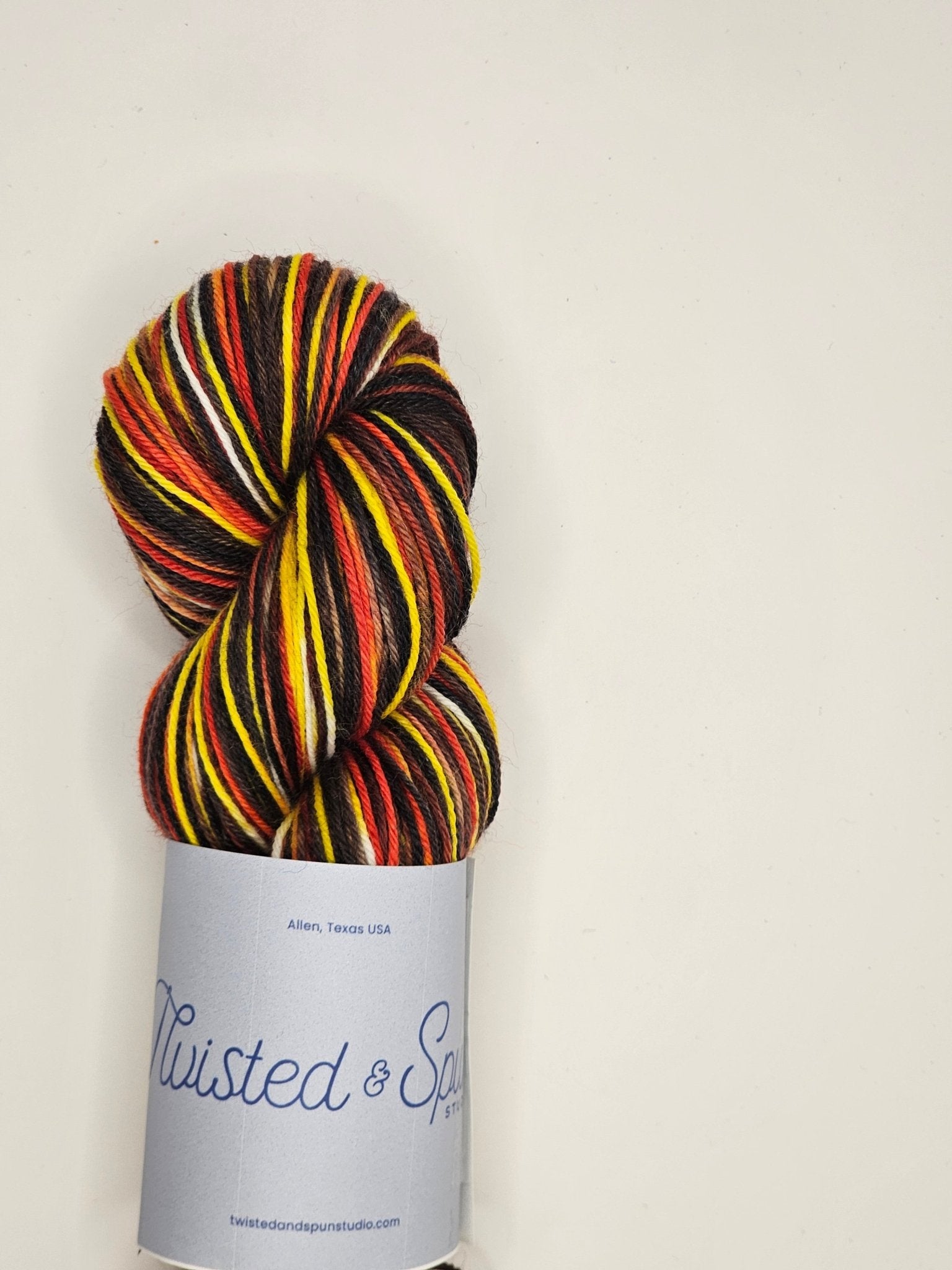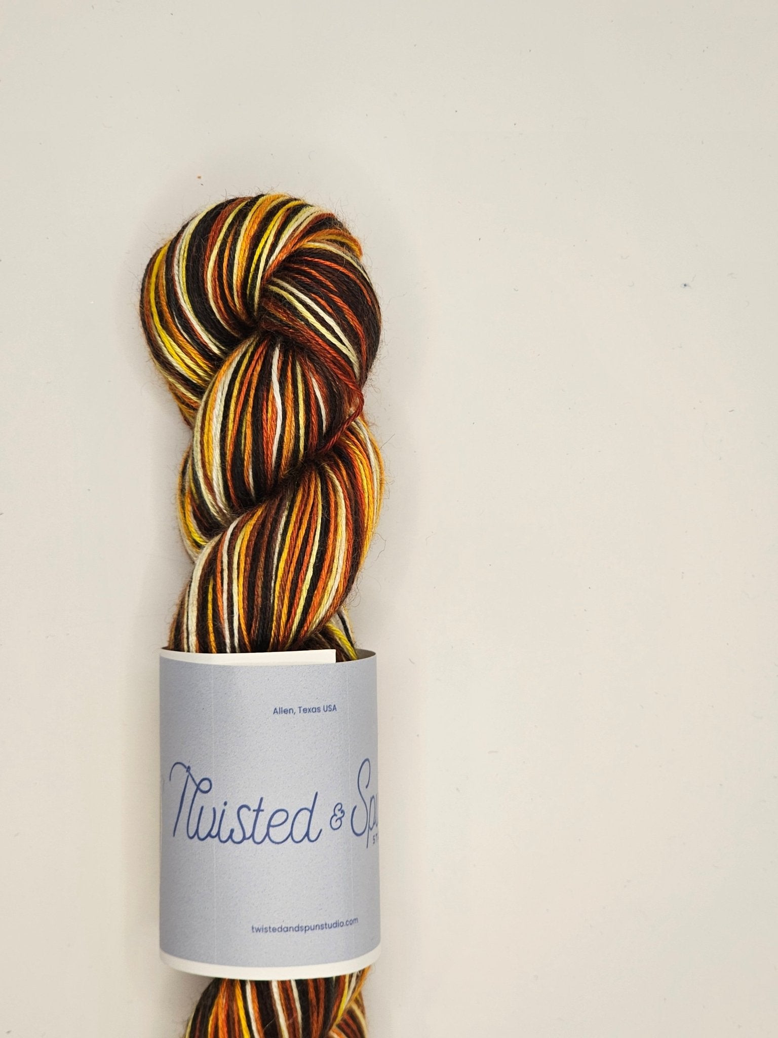Rich black, earthy brown, and flashes of orange-gold echo the dramatic plumage of the Crested Caracara. Often called the “Mexican eagle,” this bird is powerful and distinctive, standing out in any landscape. The colorway brings that same striking presence to your stitches, bold yet wearable.